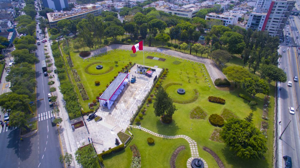Parque Salazar: El Parque Salazar es uno de los principales espacios públicos de Miraflores por su importancia conmemorativa y por ser foco de la actividad comercial de la capital. Se diseñó y habilitó como homenaje de la comunidad miraflorina a la memoria del alférez de la Fuerza Aérea del Perú don Alfredo Salazar Southwell (18/02/1913 – 14/09/1937), quien ofrendó su vida para garantizar el bienestar de la colectividad del distrito. El incidente se perpetuó durante un entrenamiento de maniobras de vuelo sobre la capital, el aviador piloteaba un bombardero “Potez”, el cual se incendió al sufrir el desprendimiento del fuselaje cuando este sobrevolaba Miraflores y en heroico acto prefirió enrumbar hacia el mar antes de caer sobre la ciudad, cayendo inmolado precisamente en el lugar donde se sitúa el parque en la actualidad.